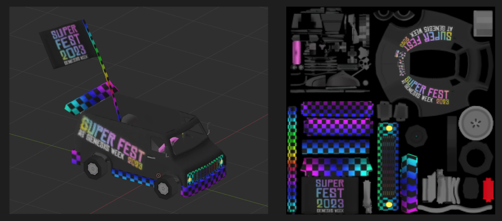 This trim is the only one that holds all mesh characteristics into one single texture image. Note that compared with LOD 0 and 1, this one has together both wheels and car body design.